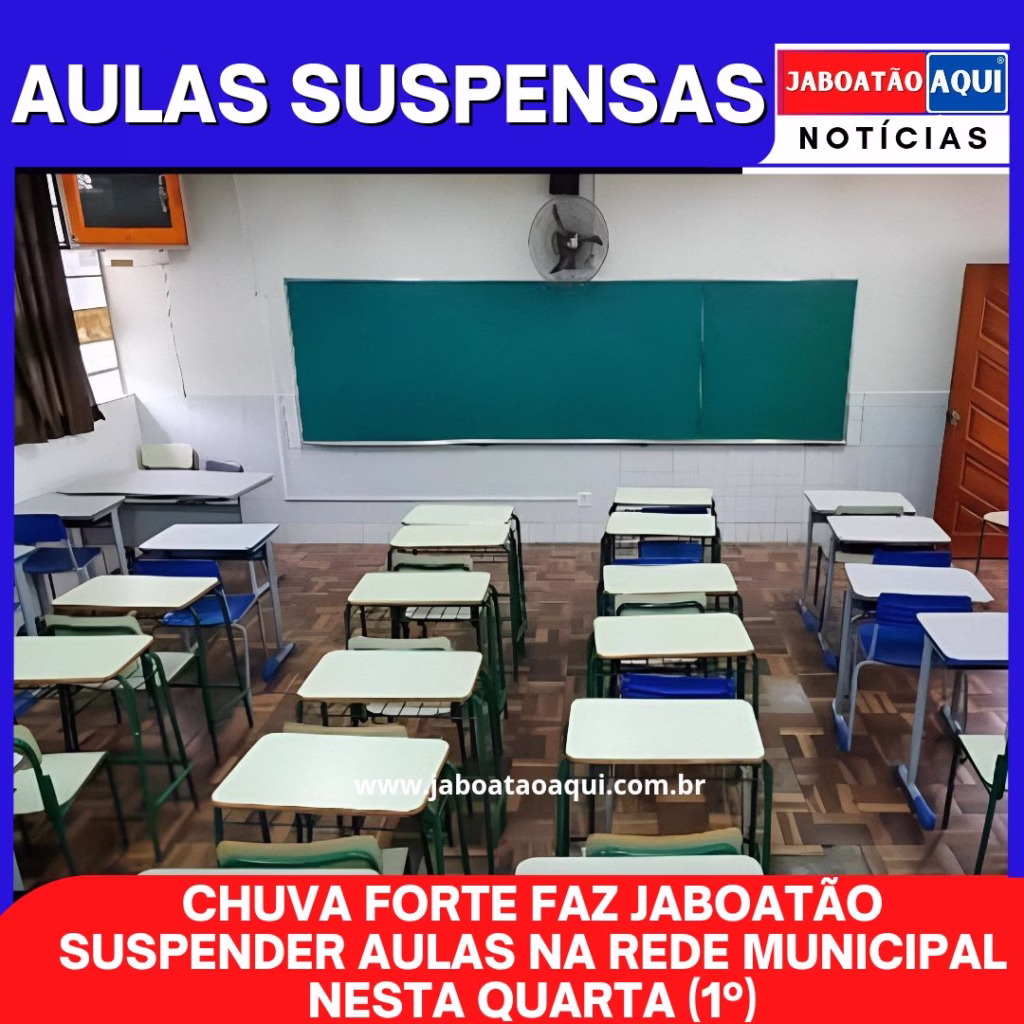 ➡️ As fortes chuvas que atingem Pernambuco nesta quarta-feira (1º) provocaram a suspensão das aulas na rede municipal de ensino de Jaboatão dos Guararapes, na Região Metropolitana do Recife.
