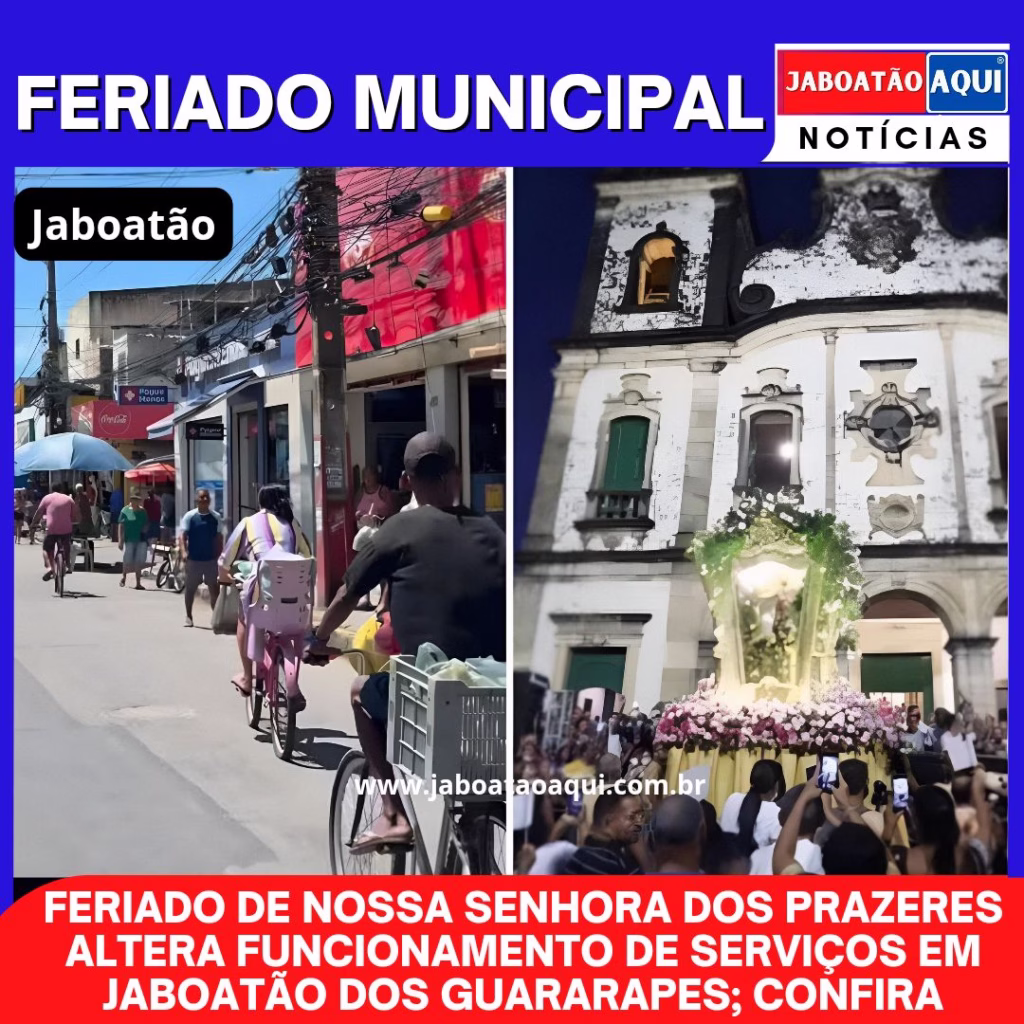 FERIADO DE NOSSA SENHORA DOS PRAZERES ALTERA FUNCIONAMENTO DE SERVIÇOS EM JABOATÃO DOS GUARARAPES; CONFIRA