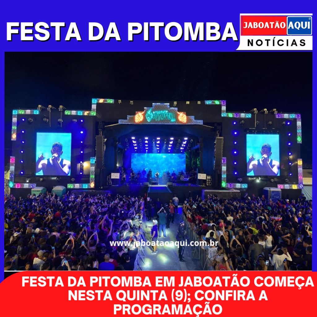 ➡️ A 369ª edição da tradicional Festa da Pitomba promete movimentar Jaboatão dos Guararapes, na Região Metropolitana do Recife, entre os dias 9 e 13 de abril. O evento será realizado no Parque Nacional Histórico dos Guararapes e reúne uma programação diversificada com shows musicais, celebrações religiosas e manifestações culturais.