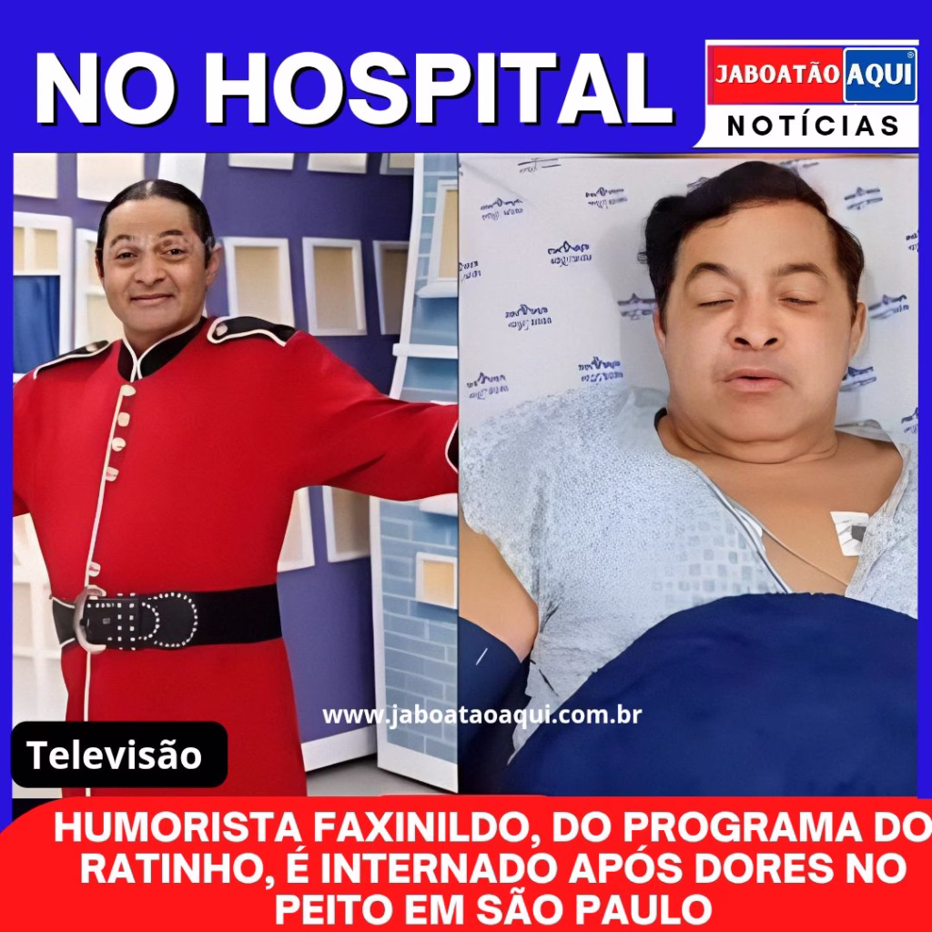 ➡️ O humorista Marcelino Leite da Silva Junior, conhecido como Faxinildo do Programa do Ratinho, foi internado após apresentar dores no peito, causando preocupação entre fãs e colegas de trabalho.