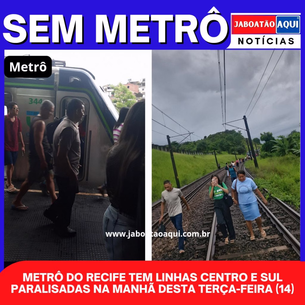 METRÔ DO RECIFE TEM LINHAS CENTRO E SUL PARALISADAS NA MANHÃ DESTA TERÇA-FEIRA (14)