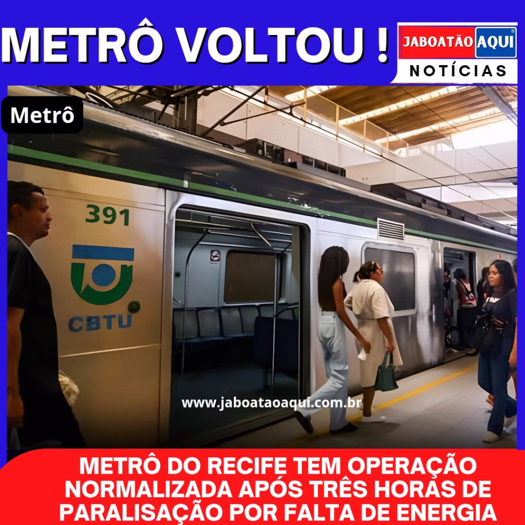 ➡️As Linhas Centro e Sul do Metrô do Recife voltaram a operar normalmente por volta das 9h30 desta terça-feira (14), após cerca de três horas de paralisação provocada por falta de energia elétrica.