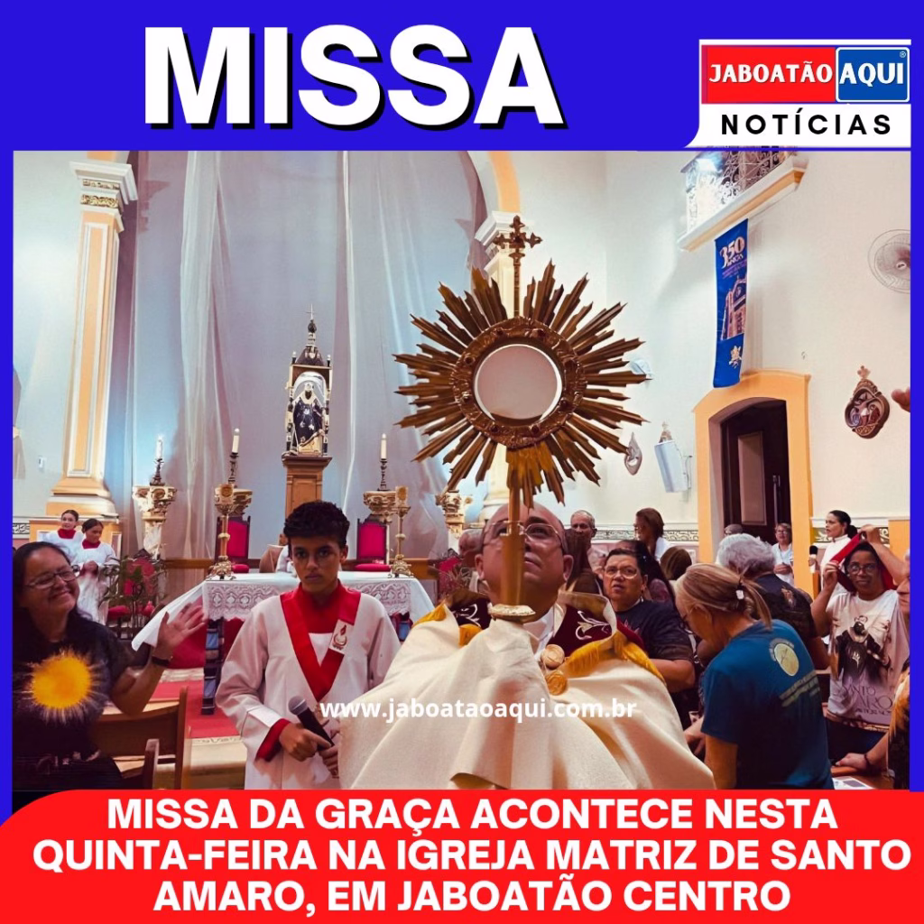 ➡️ A Paróquia de Santo Amaro realiza nesta quinta-feira mais uma edição da tradicional Missa da Graça, reunindo fiéis e moradores de Jaboatão dos Guararapes para um momento de fé, espiritualidade e renovação.
