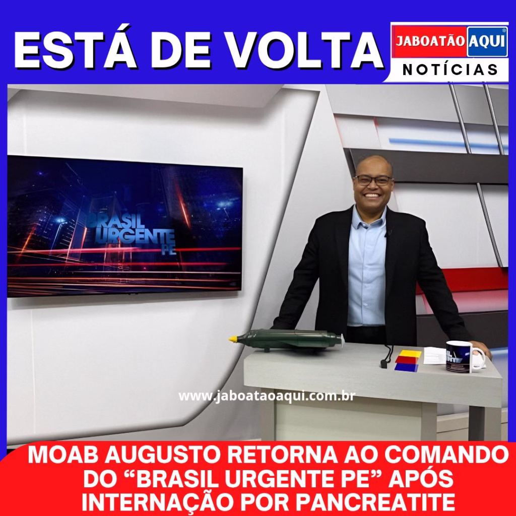 ➡️ O apresentador e jornalista Moab Augusto voltou a comandar o programa Brasil Urgente PE, da TV Tribuna, nesta quarta-feira (1), após um período afastado para tratamento de saúde.
