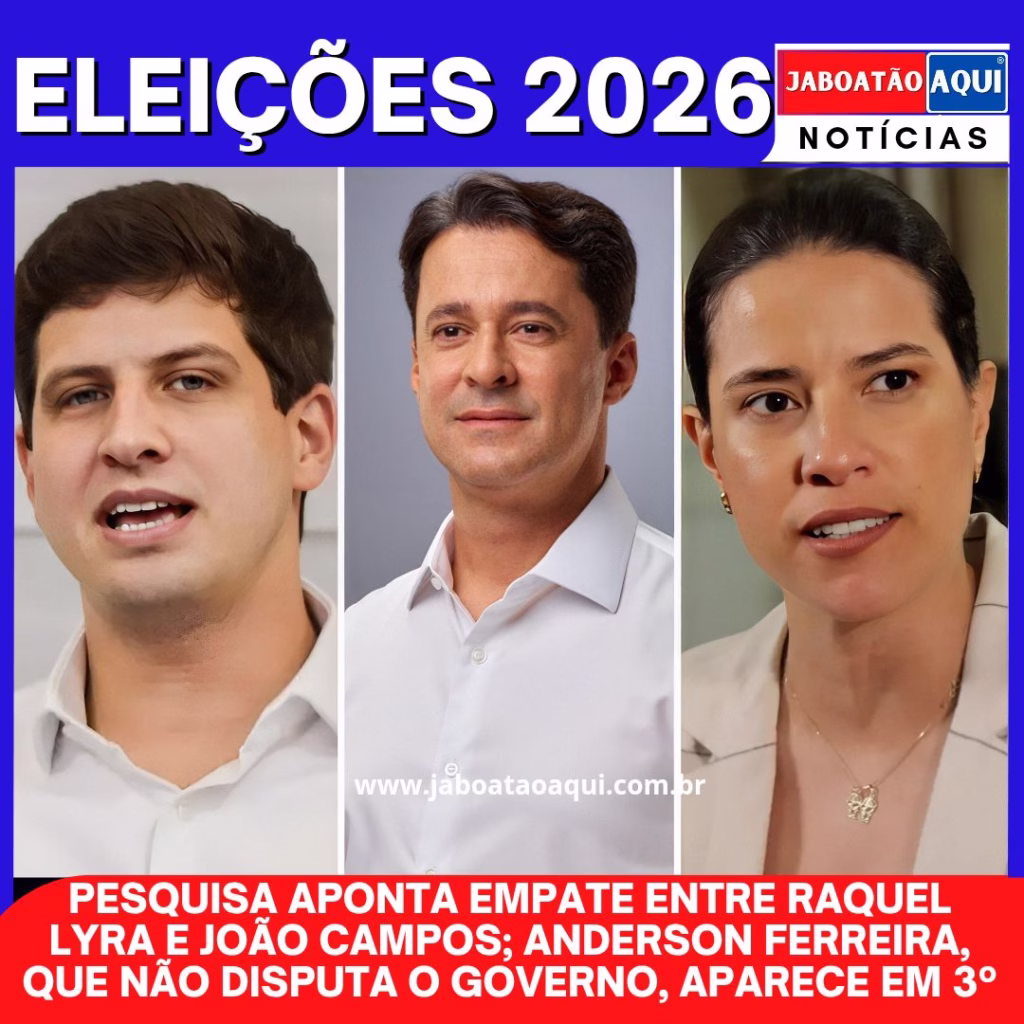 PESQUISA APONTA EMPATE ENTRE RAQUEL LYRA E JOÃO CAMPOS; ANDERSON FERREIRA, QUE NÃO DISPUTA O GOVERNO, APARECE EM 3º