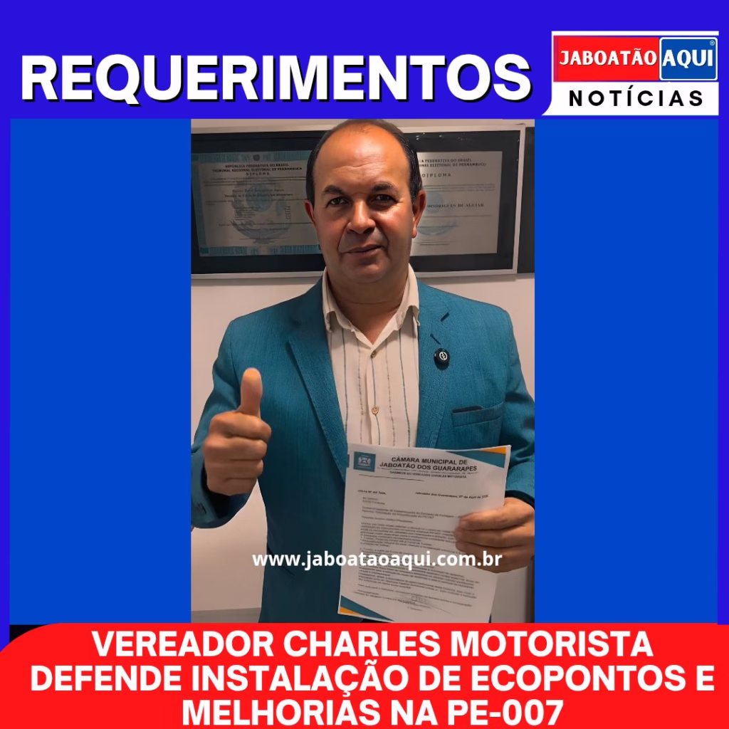 Outro destaque da agenda do parlamentar é a situação da rodovia PE-007 (Estrada que liga Jaboatão a Moreno), considerada uma via estratégica para a mobilidade local. Charles Motorista informou que uma reunião foi agendada com o Departamento de Estradas de Rodagem (DER), contando com o apoio do deputado federal Guilherme Uchôa.